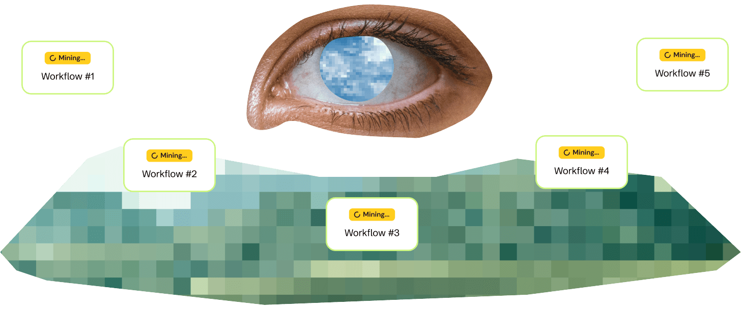 Process mining is a technique that analyzes data from your team while they work to visualize and understand real business processes. It helps identify inefficiencies, deviations, and opportunities for improvement by reconstructing workflows based on event logs.