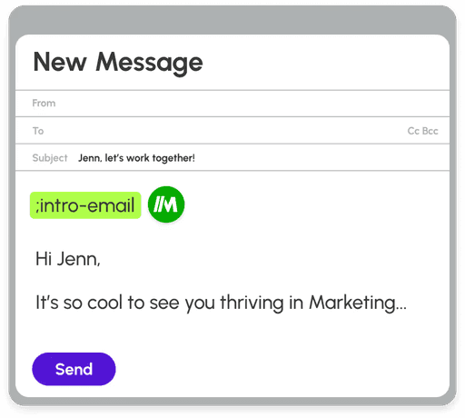 Don’t just expand text, have Magical AI write messages, emails, or chats for you. Use quick replies to reply instantly in context and never start from a blank state again.